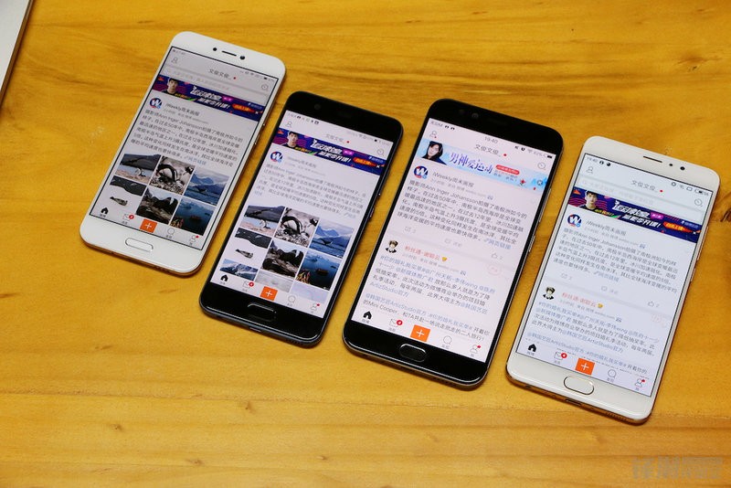 从左往右:华为P10、小米5C、魅族 Pro 6 Plus、vivo X9 Plus