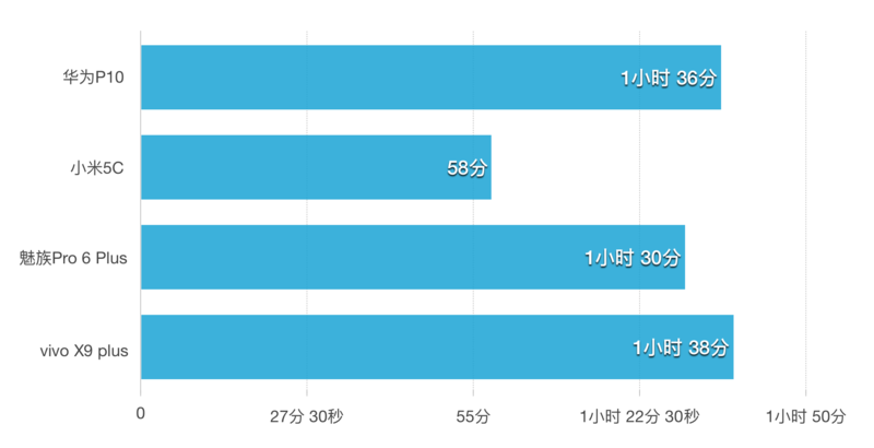 vivo X9 Plus (4000mAh)》 魅族 Pro 6 Plus(3400mAh) 》 华为 P10(3200mAh) 》 小米5C(2860mAh)