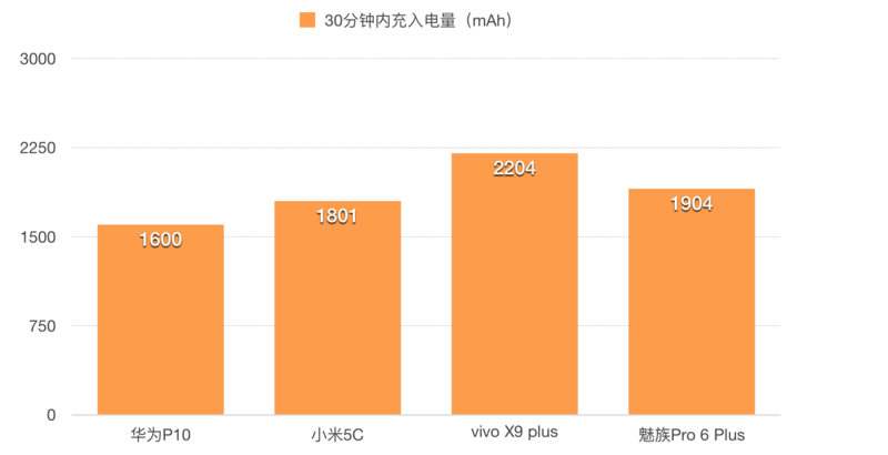 魅族Pro 6 Plus(24W;高压)》华为P10、vivo X9 Plus(22.5W;低压)》小米5C(18W;高压)