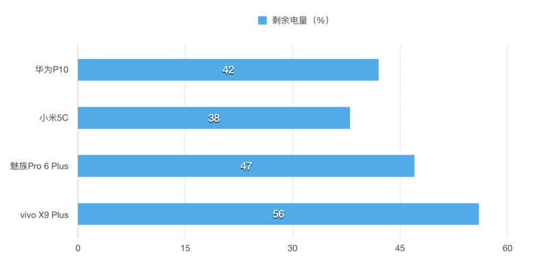 vivo X9 Plus(≈22.1W)》魅族Pro 6 Plus(≈21.7W)》小米5C(≈18.5W)》华为P10(≈14.3W)