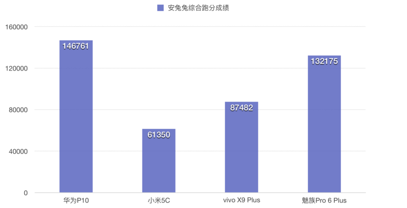 华为P10(45.69)》vivo X9 Plus(41.71)》小米5C(40.53)》魅族Pro 6 Plus(39.03)